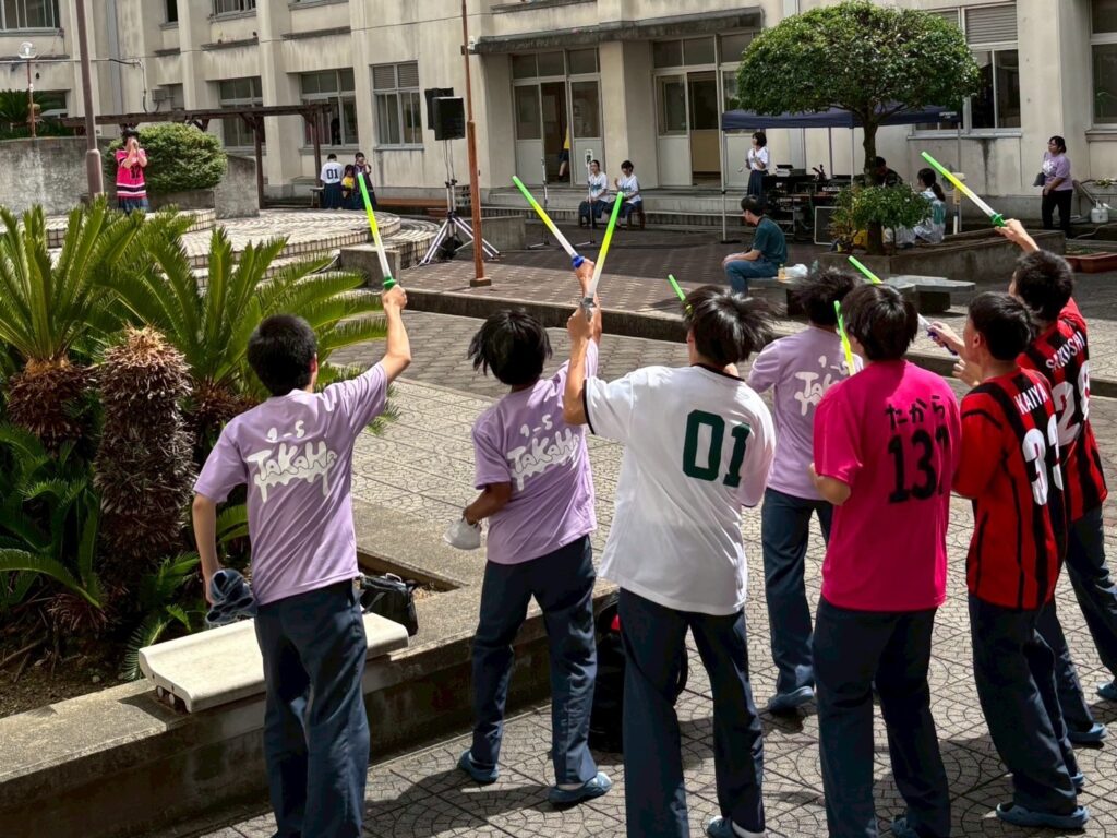 2025年 高円祭 【中庭発表】 2025 10/13 イベント チェック依頼 デジタル広報誌『萩友』 デジタル広報紙『萩友』2025年度 広報委員会 2025年10月13日 2025年11月26日 今年も中庭では、残暑に負けずにパフォーマンスが展開されました。書道部の凛としたパフォーマンス育友会の模擬店景品のペンライトが映える有志の屋外ライブお題に爆笑、参加者が走る陸上部借り人競争難しい?テニス部のテニスボールストラックアウト生徒たちの熱気と笑顔であふれ、大変な盛り上がりを見せました。 イベント チェック依頼 デジタル広報誌『萩友』 デジタル広報紙『萩友』2025年度 広報委員会