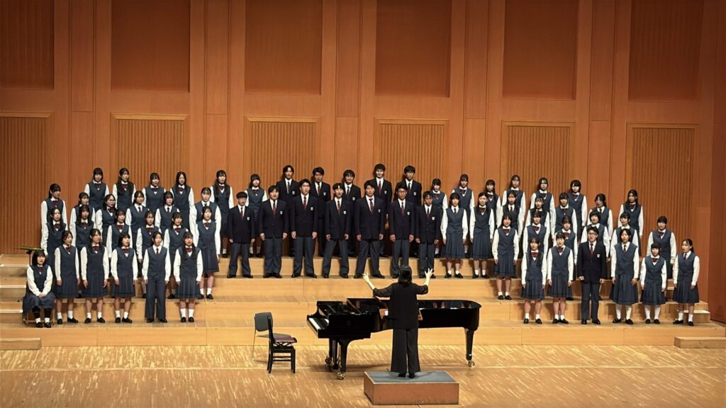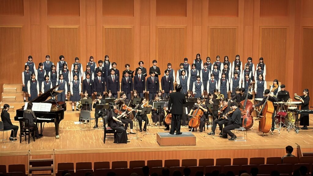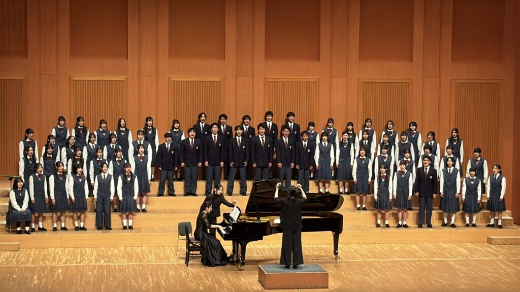 音楽科全員で作り上げた壮大な歌声は、生徒達が共に過ごし、共に努力を重ねてきた「絆」を感じさせる物でした。澄み渡った歌声がホールに響き渡る感動は、深く心に響くものでした。